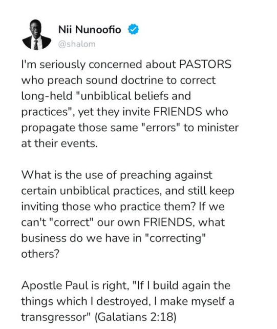 If we juxtapose Pastor Otabil’s words with Pastor Ashimolowow’s, then there is inconsistency in Otabil’s words. He is compromising on his convictions. He is putting on his pulpit a preacher whose theology cannot be put to the test of Scripture. I don’t know much about the other speakers, because I have not followed their ministry. However, looking at other sentiments expressed on social media about the speakers for the conference, it can be concluded Pastor Otabil’s convictions conflicts with the speakers and he is been inconsistent in recent pronouncements. Here are thoughts on the matter from others on social media.